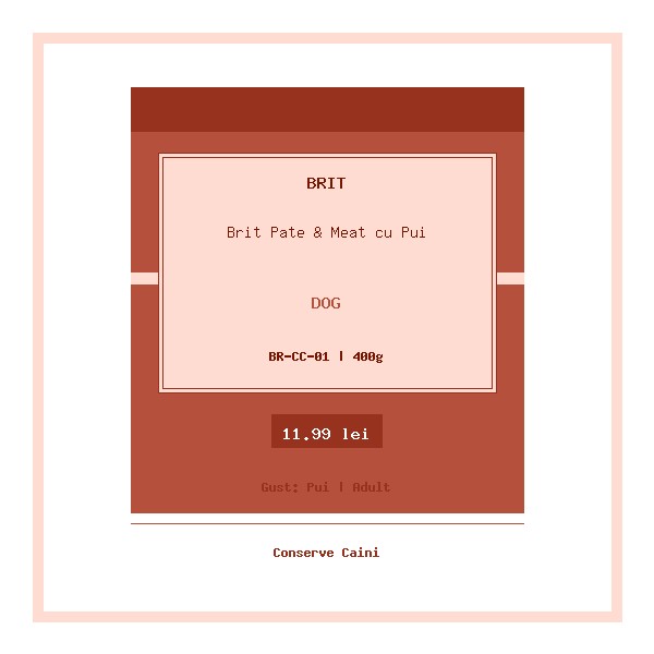 Pateu cu bucati de carne de pui. Fara soia, fara coloranti artificiali.
