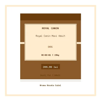 Hrana uscata completa pentru caini adulti de talie mare (26-44 kg). Formula adaptata sustine sanatatea articulatiilor si digestia optima.