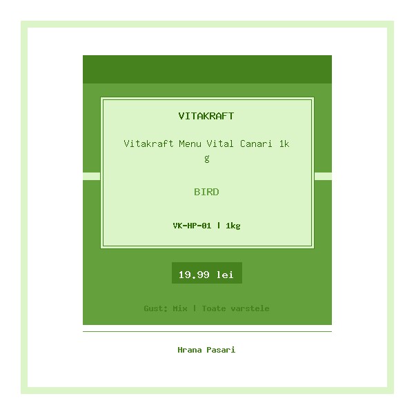 Hrana completa pentru canari cu miere si vitamine esentiale. Sustine penajul colorat.